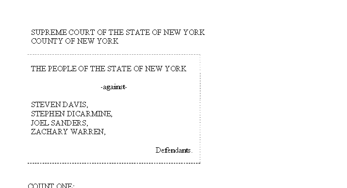 (Page 55) On or about December 30, 2008, at or about 9:18 PM, in New York County, defendant [Chief Financial Officer Joel Sanders] sent an email to defendants [Executive Director Stephen DiCarmine]and [Chairman Steven Davis] that read, in substance, “We need $50M tomorrow to meet our covenant.” On or about December 30, 2008, at or about 11:42 PM, in New York County, defendant DAVIS replied, in substance, “Ugh.”