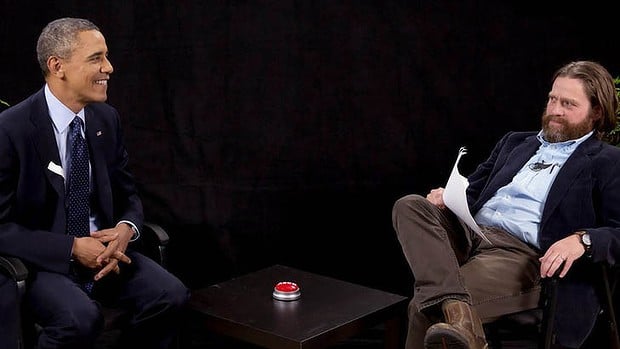 And when it comes to selling new law, that works too, it seems. Because the Obama presidency is selling – trying to sell – the Affordable Care Act and that’s where both “Between Two Ferns” and its parent website “Funny or Die” are coming into play.