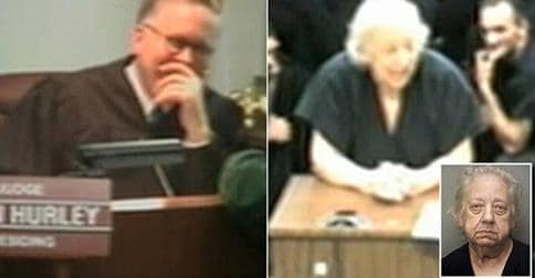 Funny side of the law: Judge John Hurley starts laughing during 80-year-old Dolores Sheinis’ appearance in Broward County Court, Florida. During the three-minute hearing she made the courtroom break into hystrerics